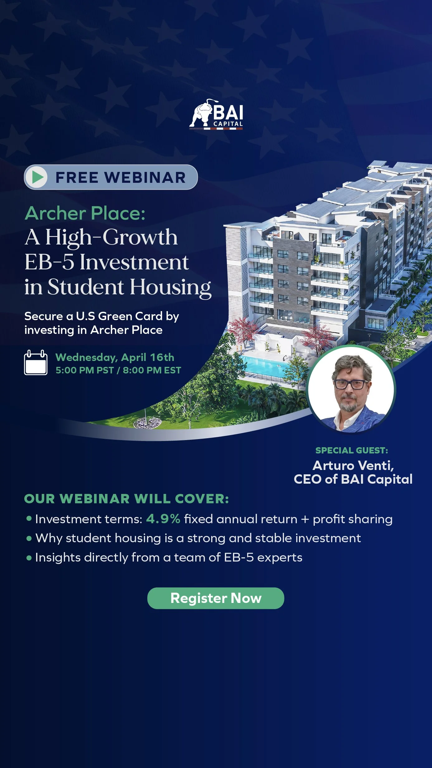 At BAI Capital, a boutique private equity and real estate investment firm, we were preparing to launch Archer Place—an EB-5 eligible mixed-use development project in Gainesville, Florida.